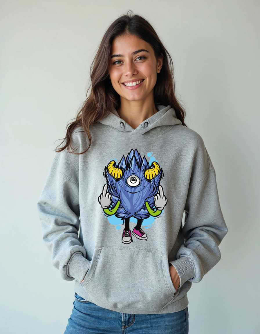 Grumpy Horned Monster Street Art Unisex Printed Graphic Hoodies For Men & Women