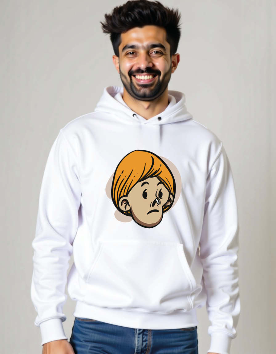 Worried Cartoon Boy Pop Art Unisex Printed Graphic Hoodie For Men & Women