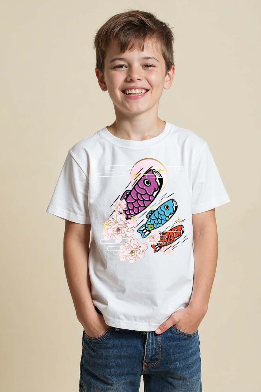 Three Koinobori Fish Playful Trendy Printed Tee for Kids – Drawing Print Design
