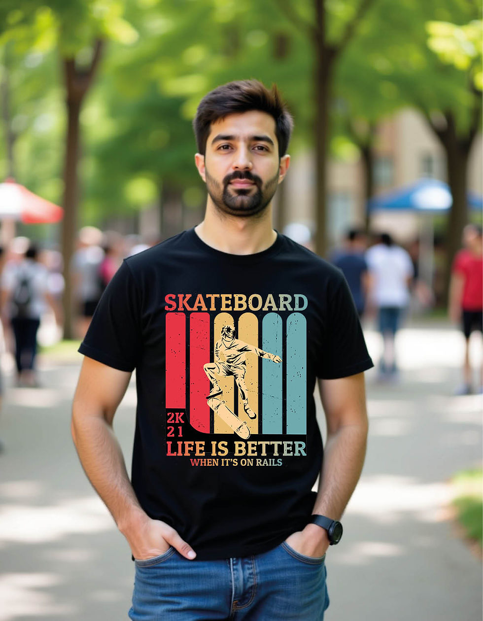 Skateboard life is better silhouettle mens printed graphic t shirt