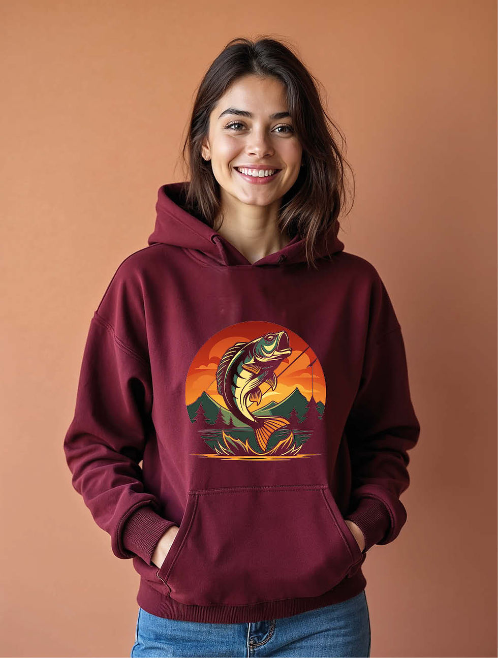 Retro Sunset Bass Fishing Woman's Printed Graphic Stylish Hoodies