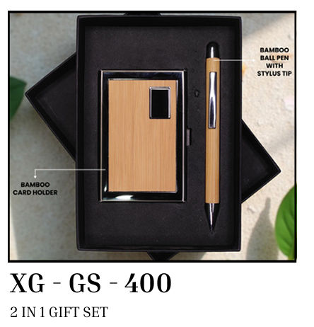2 in 1 gift set bamboo card holder & bamboo ball pen with stylus tip