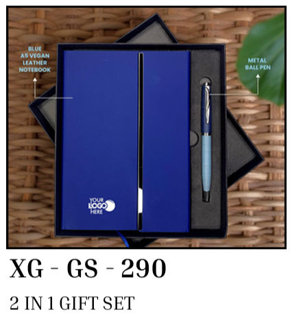 2 in 1 gift set blue a5 vegan leather notebook & metal ball pen