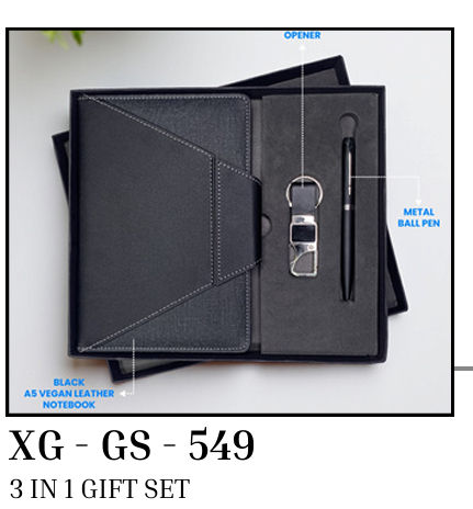 3 in 1 gift set black a5 vegan leather notebook & 3 in 1 keychain key holder