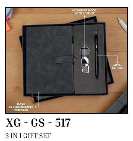 3 in 1 gift set black a5 vegan leather notebook & keychain with key holder loop