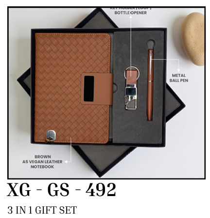 3 in 1 gift set brown a5 vegan leather notebook & 3 in 1 keychain key holder