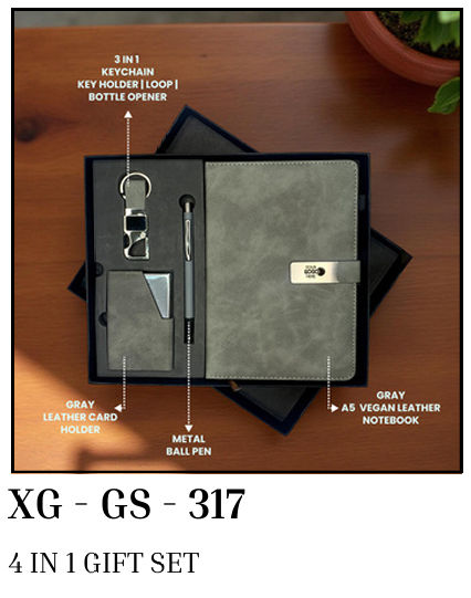 Package Content : 4 in 1 gift set gray leather card holder & 3 in 1 keychain key holder loop bottle opener & metal ballpen & gray a5 vegan leather notebook