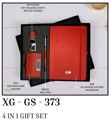 Package Content : 4 in 1 gift set red leather card holder & 3 in 1 keychain key holder loop bottle opener & metal ballpen & red a5 vegan leather notebook