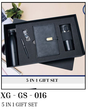 5 in 1 gift set black bottle, pen, keychain, note book & mug