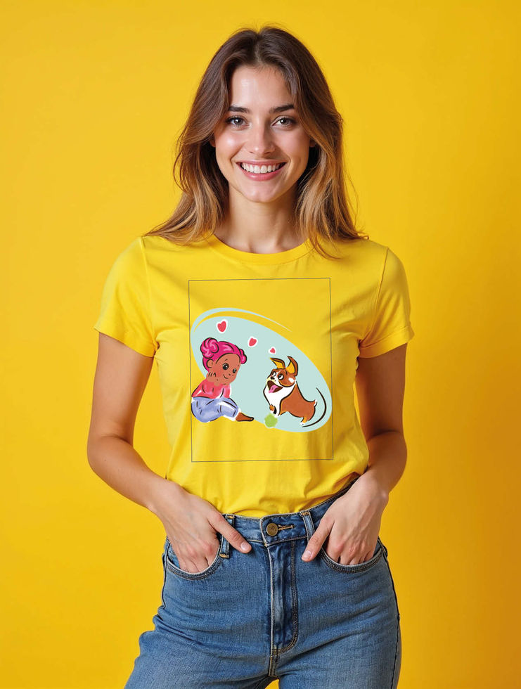 Adorable Girl Playing with a Corgi Cool Women’s Graphic T-Shirt – Best Price