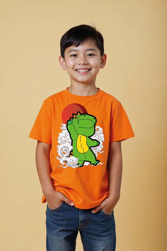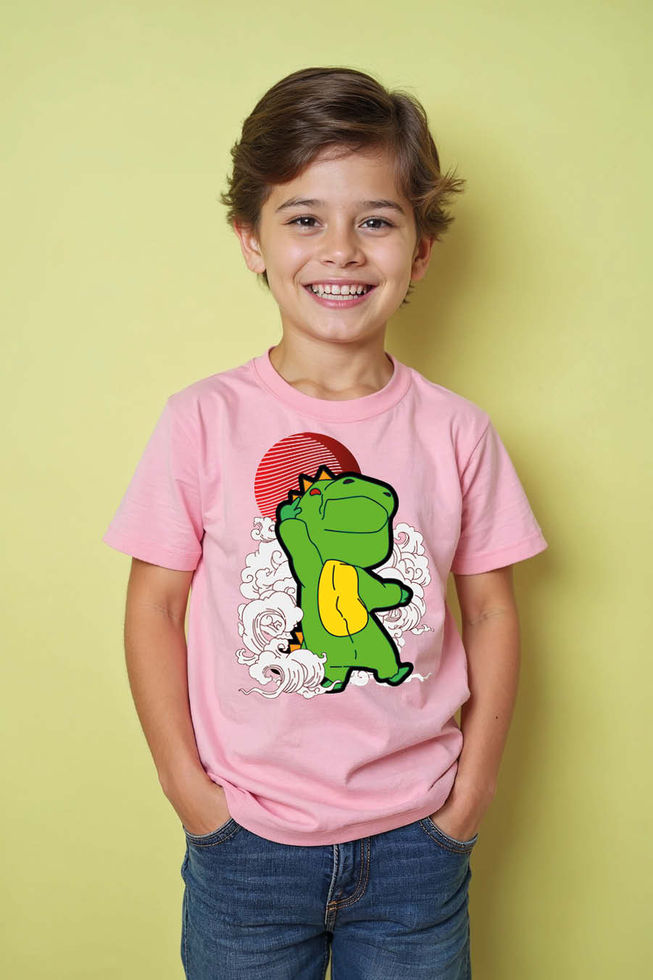 Adorable Green Dinosaur Cotton Casual Kids Printed T-Shirt – Illustration Print