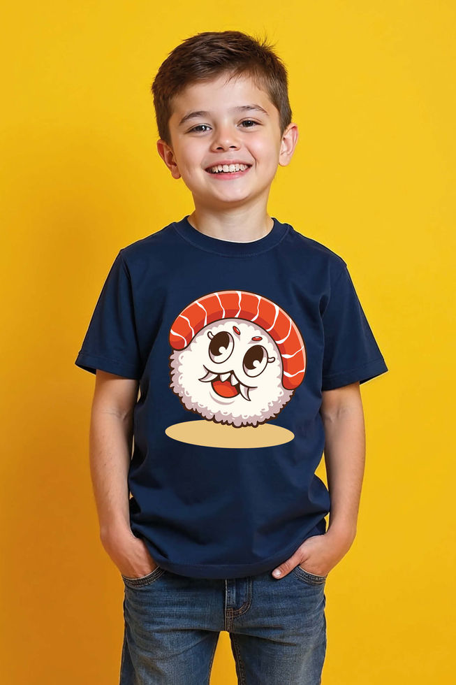 Adorable Salmon Sushi Roll Monster Kids T-Shirt Playful Trendy Printed Tee