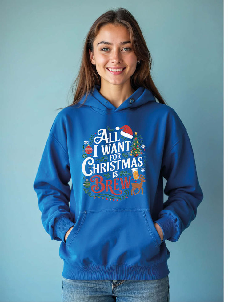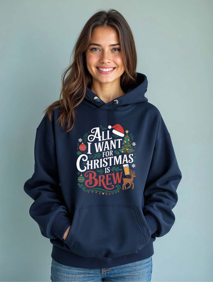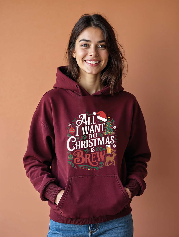 all i want for christmas is brew Casual Women’s Quote Hoodies – Discount Offer