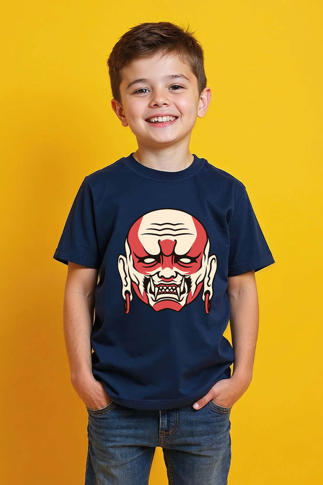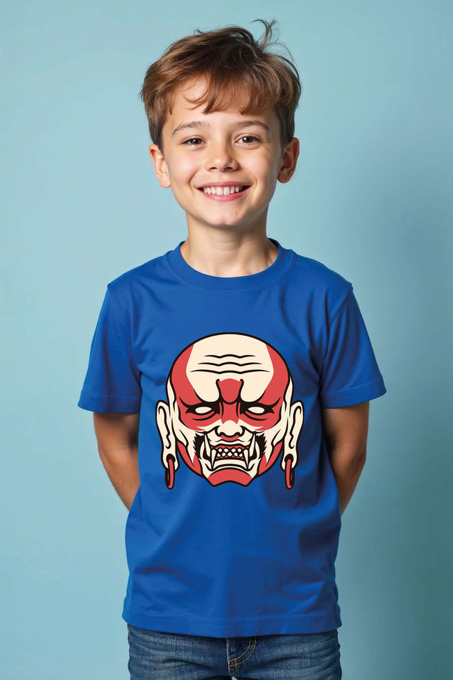 Angry Oni Demon Mask T-Shirt Playful Stylish Kids Graphic T-Shirt – Graphic