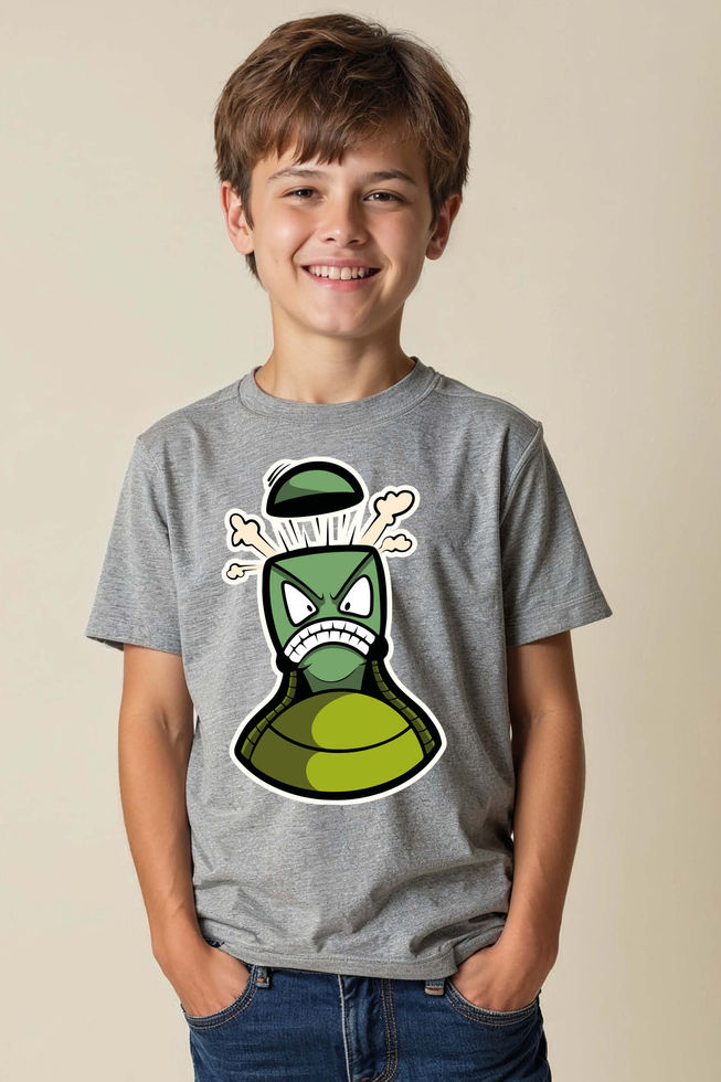 Angry Turtle Power Graphic T-Shirt Casual Trendy Printed Tee for Kids – Typograp