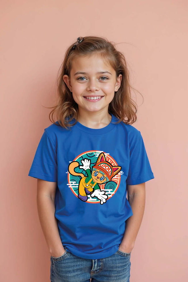 Anime Cat Overalls Colorful Circle Premium Cool Cartoon Kids T-Shirt – Typograph