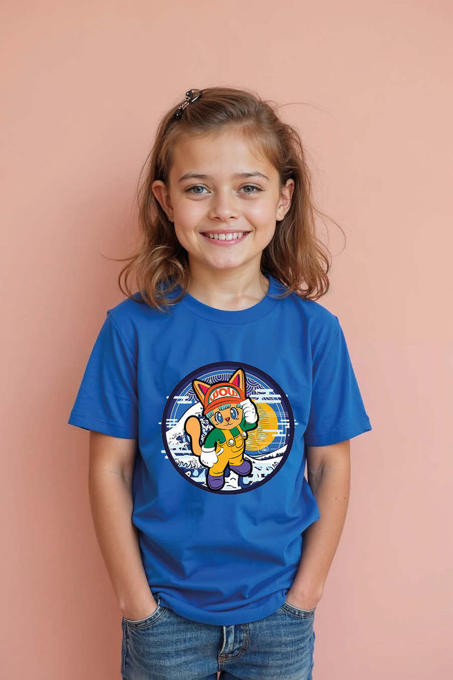 Anime Cat Overalls Hokusai Wave Stylish Kids Printed T-Shirt – Graphic Print Des