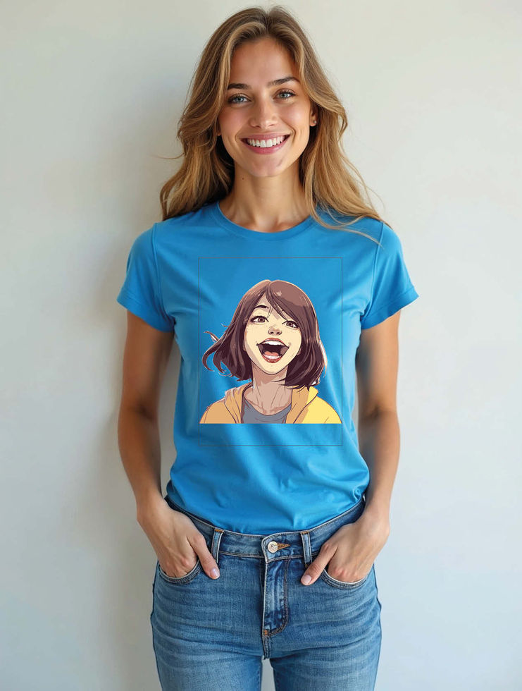 Anime Girl Laughing Joyfully Chic Women’s Typography T-Shirt – Best Price