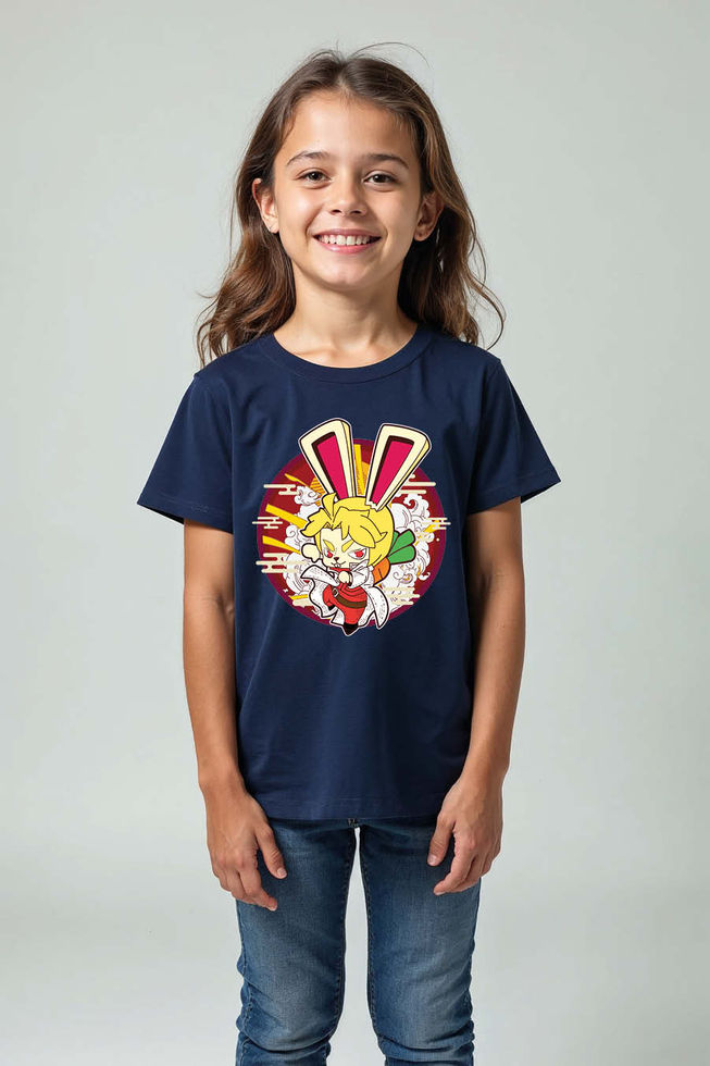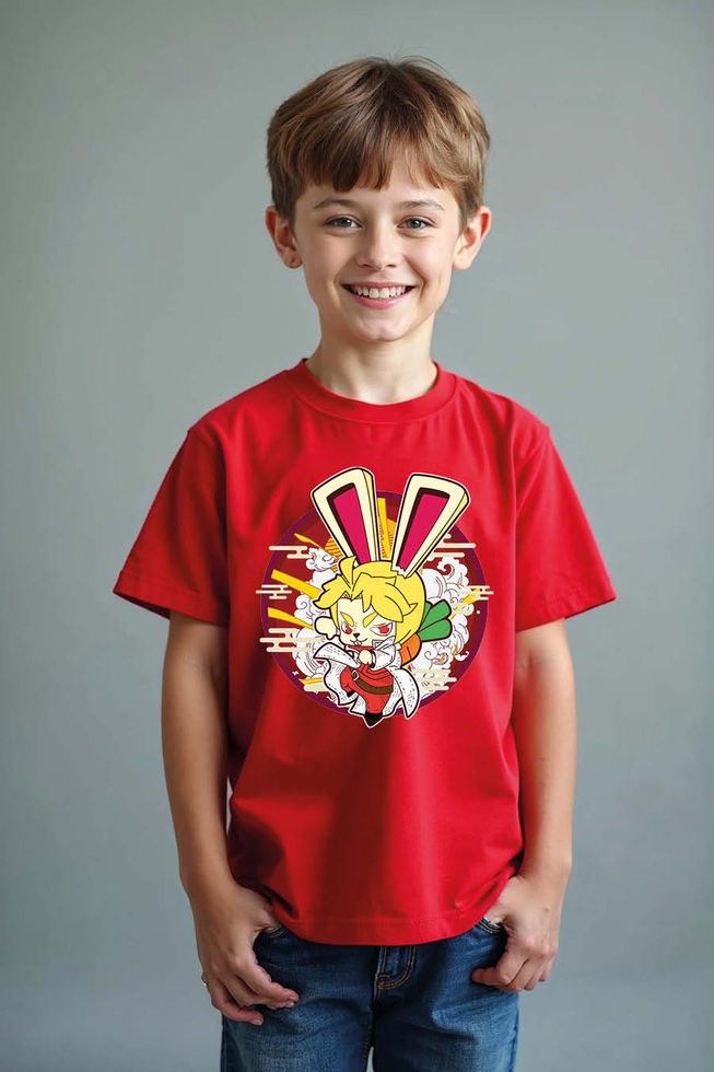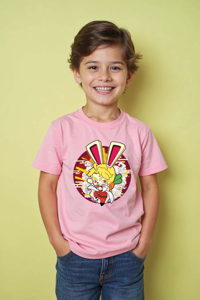 Anime Rabbit Warrior T-Shirt Stylish Unisex Kids Graphic Tee – Drawing Print