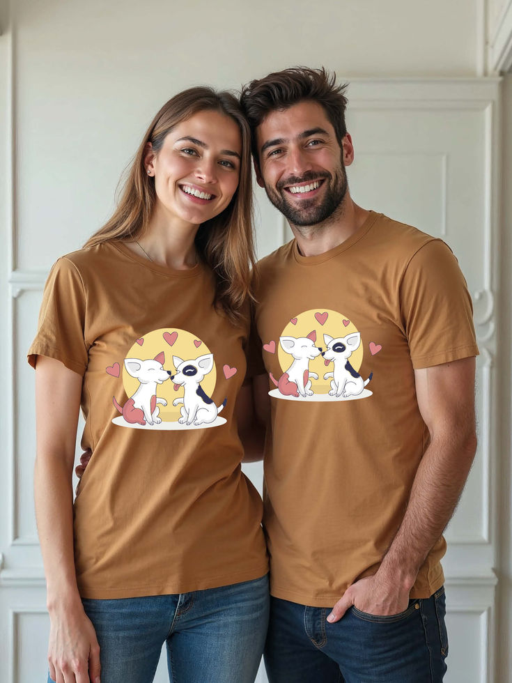 Try the premium quality pre-shrunk Couple T shirts.