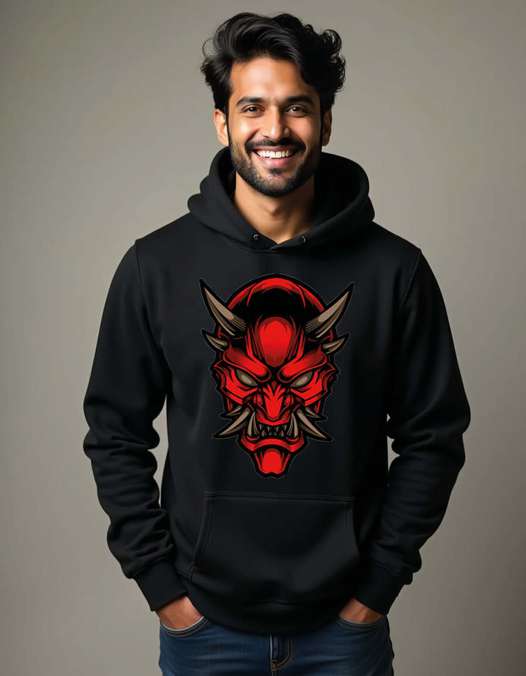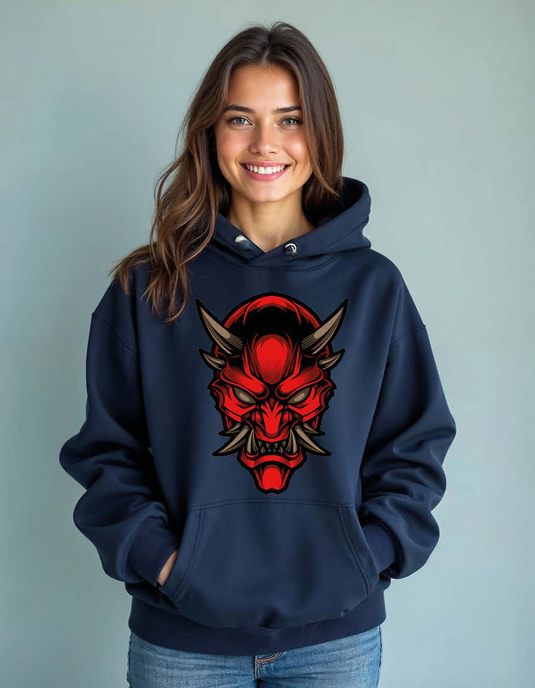 Azure Fury Red Oni Guardian Urban Unisex Printed Graphic Hoodies For Men & Women
