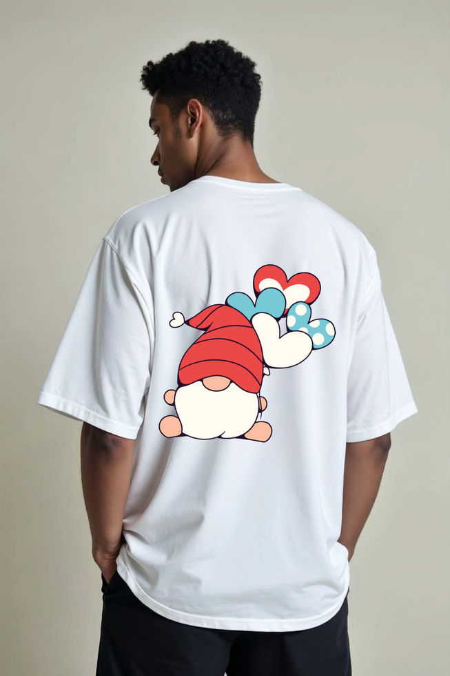 Balloon-Holding Gnome Trendy Graphic Unisex Drop Shoulder Oversized T-Shirt