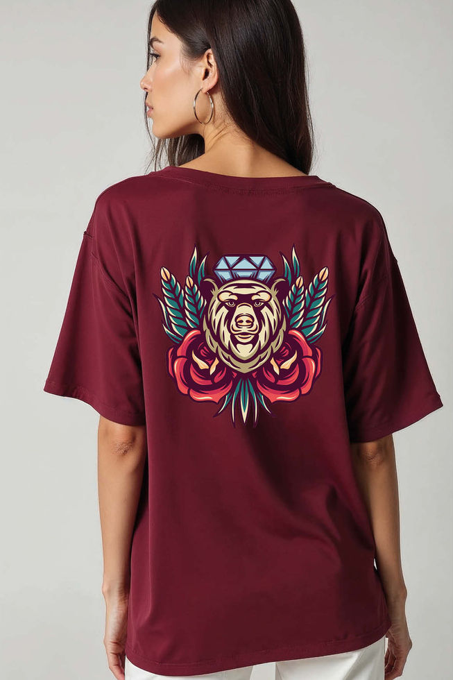 Bear with Roses and Diamond Crown Aesthetic Unisex Oversized Drop Shoulder Tees