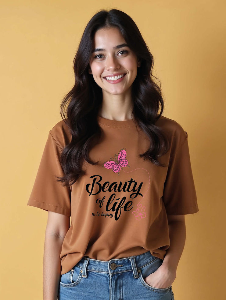 beauty of life to be happy Chic Women’s Printed T-Shirt best price
