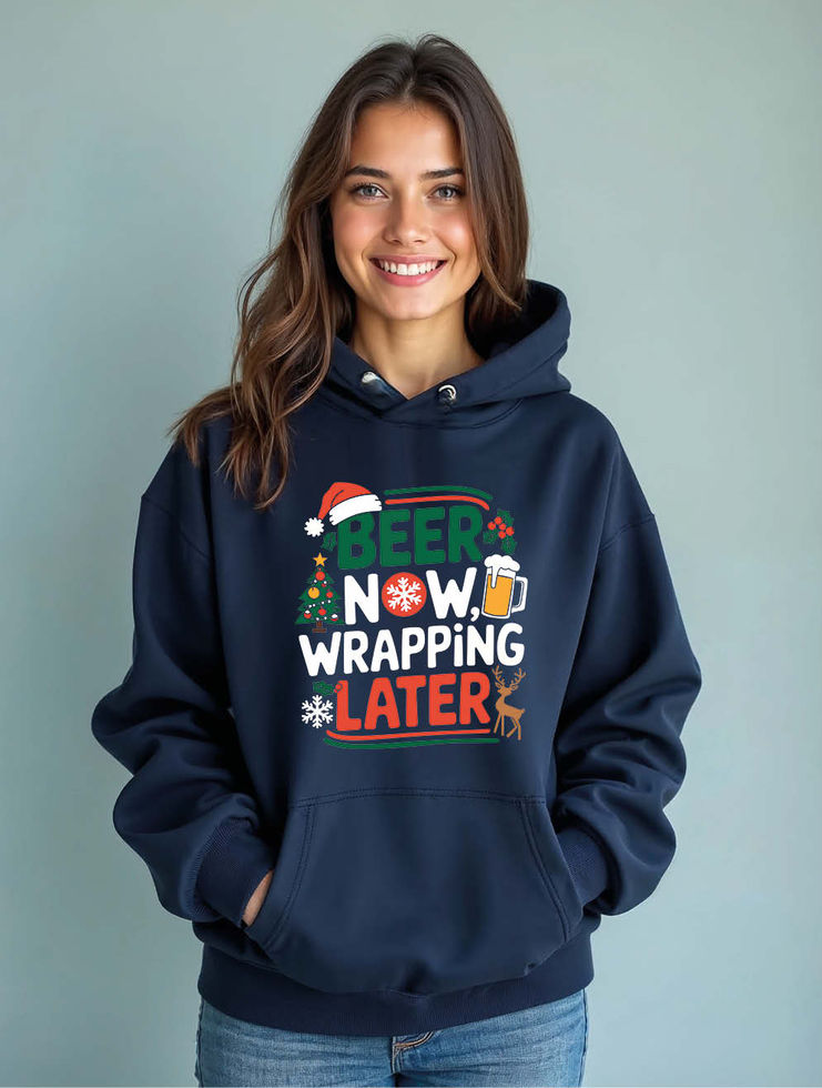 beer now wrapping later Modern Women’s Streetwear Printed Hoodies – Buy Now