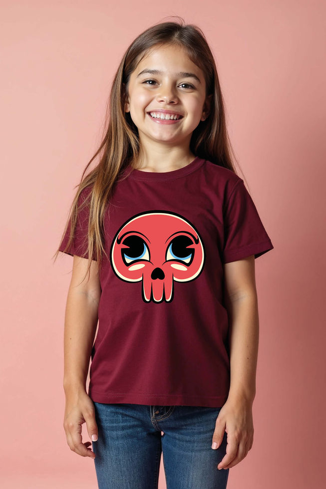 Big-Eyed Cute Skull Soft Casual Kids Printed T-Shirt – Illustration Print Design