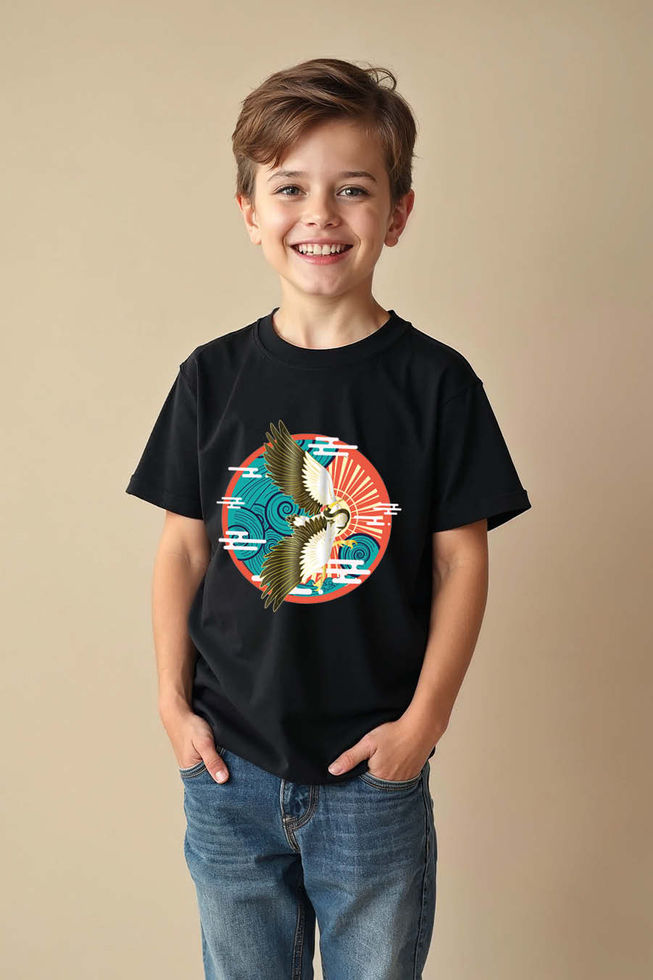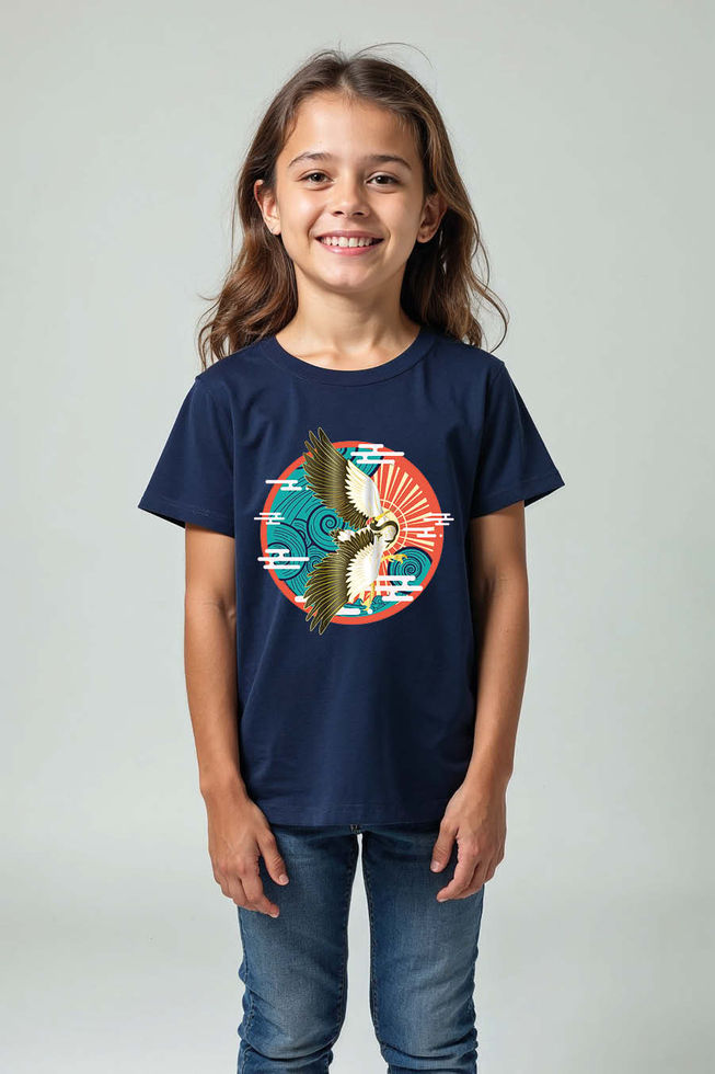 Bird with Blue Waves Everyday Cool Cartoon Kids T-Shirt – Design Print Design fo