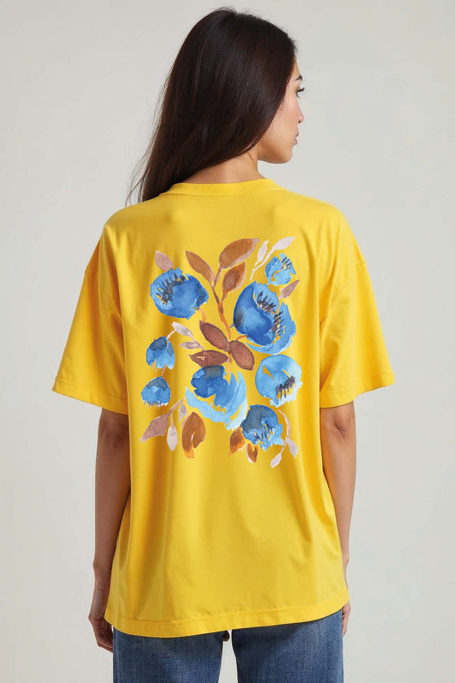Blue Floral Cool Unisex Oversized Drop Shoulder T-Shirt for Men & Women