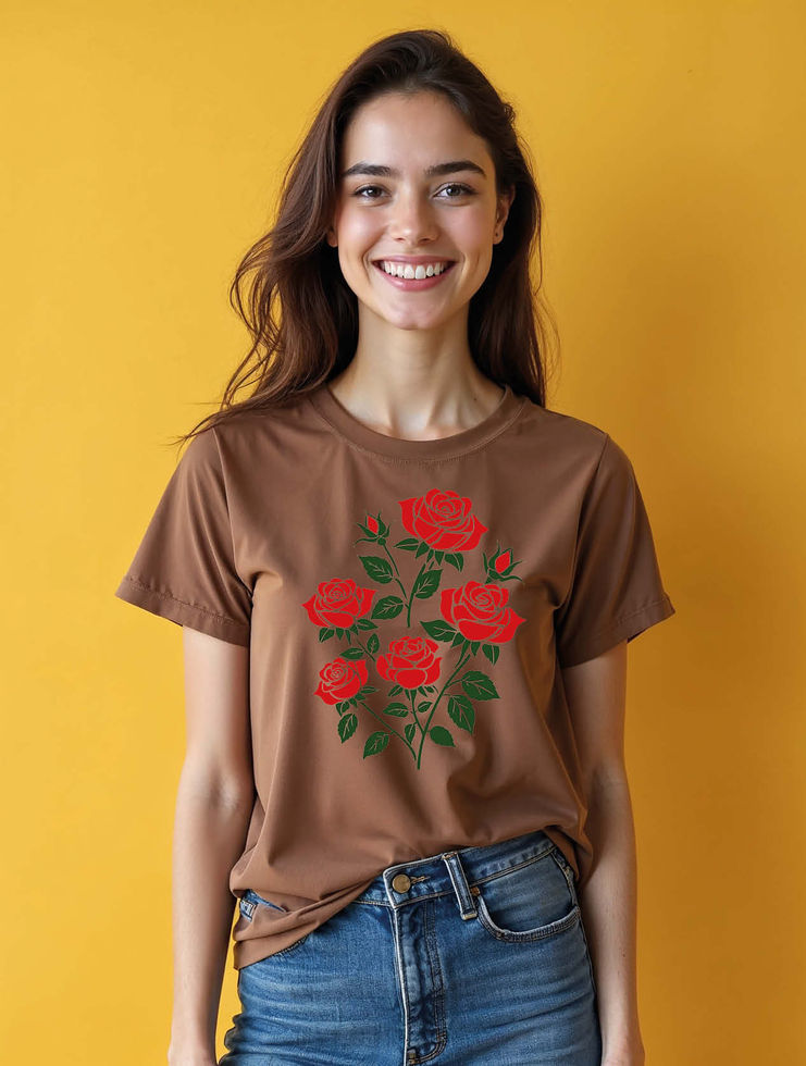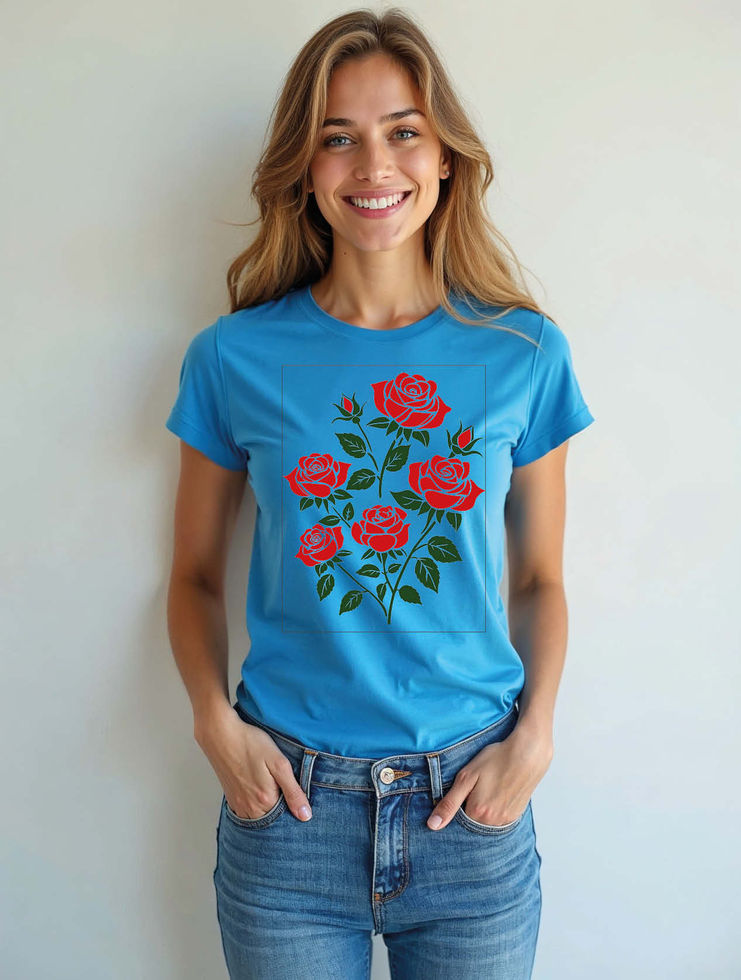 Bold Red Rose Bouquet Stylish Women’s Graphic T-Shirt – Limited Stock