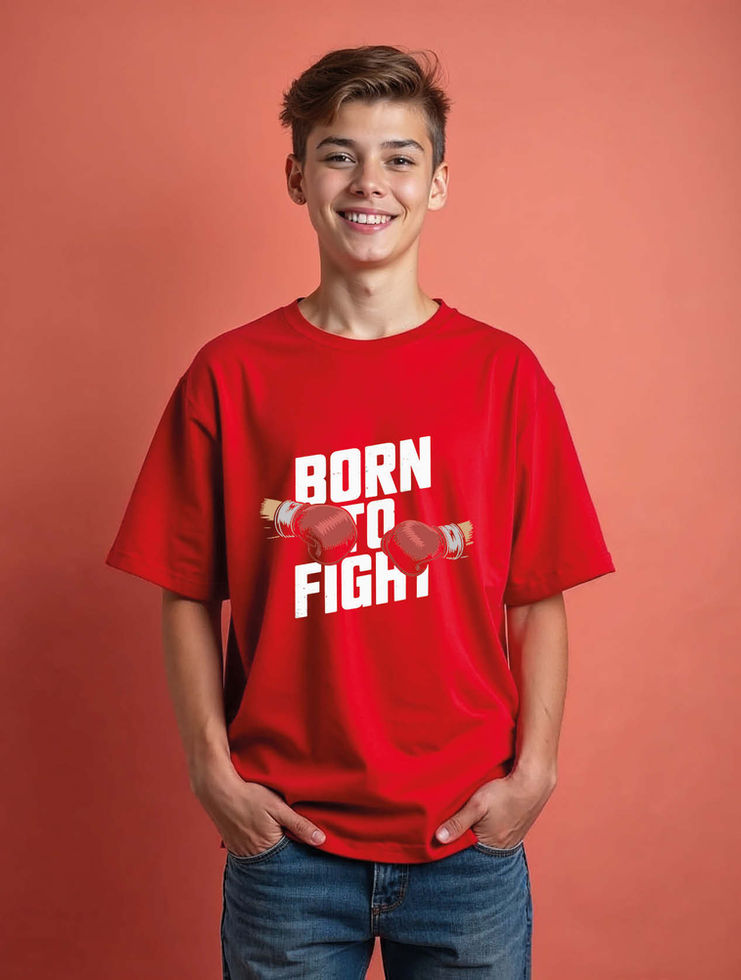 born to fight Trendy Graphic Unisex Drop Shoulder Oversized T-Shirt