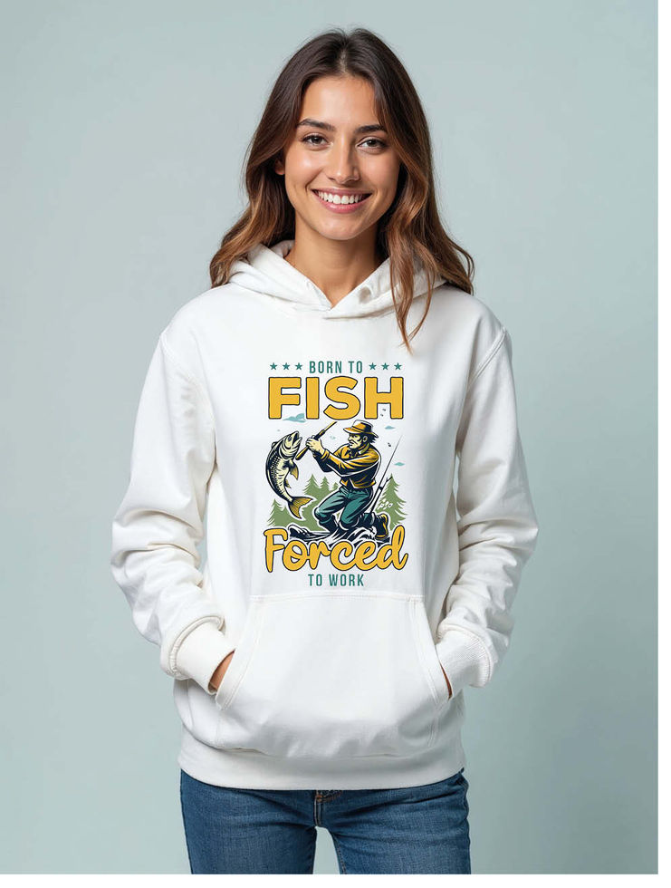 born to fish forced to work Casual Women’s Streetwear Hoodies – Best Price