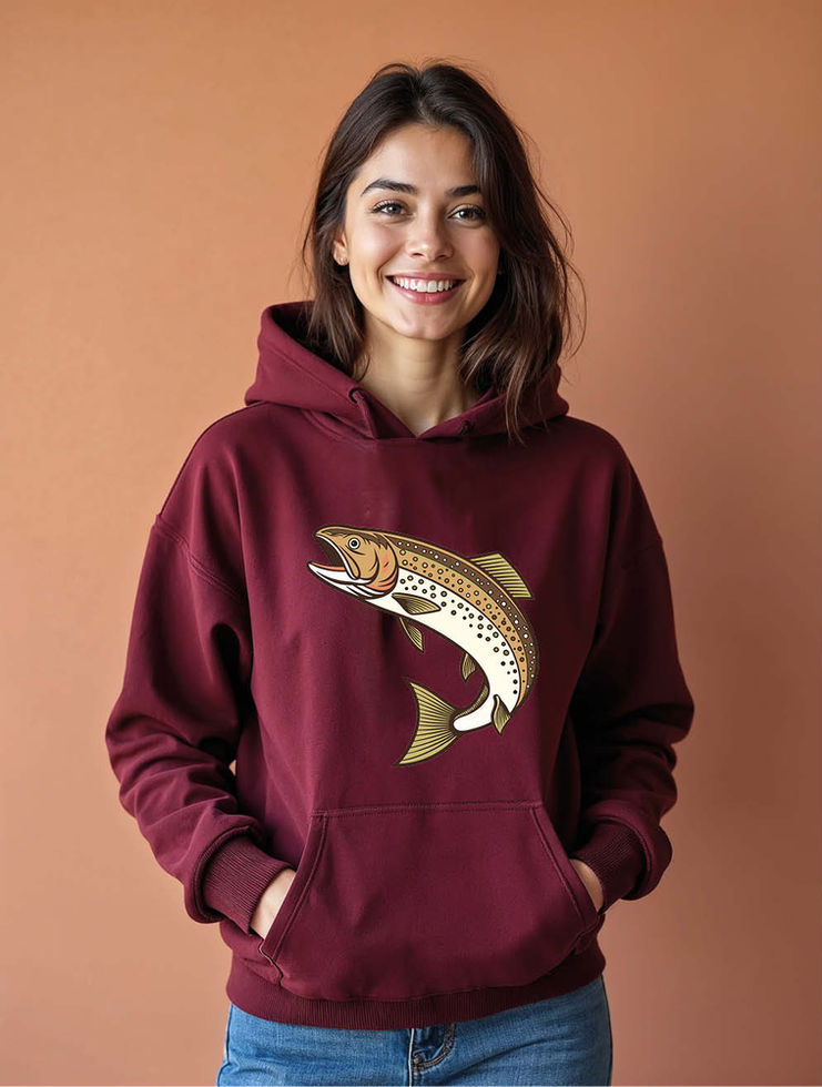 Brook Trout Illustration Trendy Women’s Printed Graphic Streetwear Hoodies – Buy