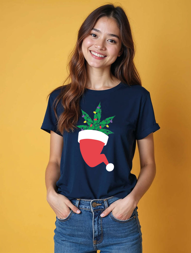Cannabis Leaf Christmas Santa Hat Chic Women’s Printed Graphic Streetwear Tees