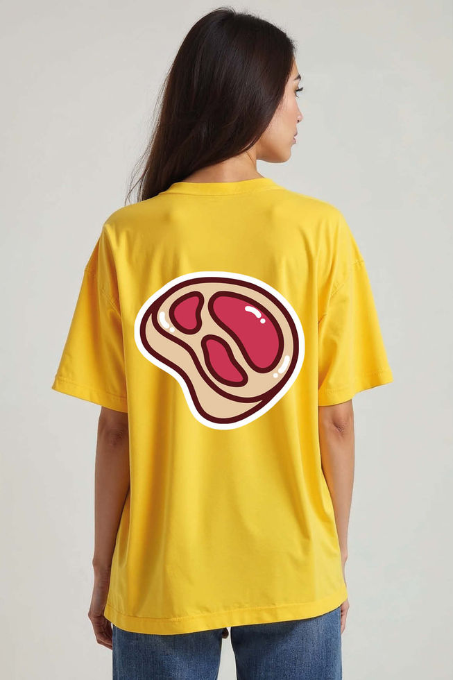 Cartoon Steak Aesthetic Unisex Drop Shoulder Oversized T-Shirt for Men & Women