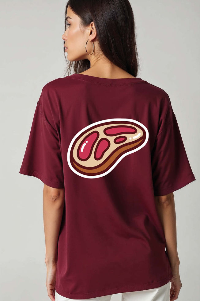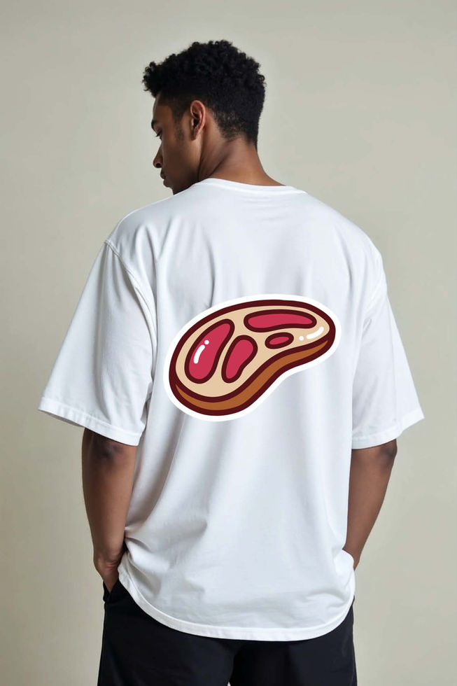 Cartoon Steak Back Stylish Aesthetic Unisex Drop Shoulder Oversized T-Shirt