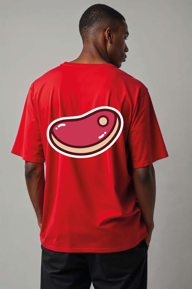 Cartoon Steak Urban Unisex Drop Shoulder Oversized T-Shirt for Men & Women