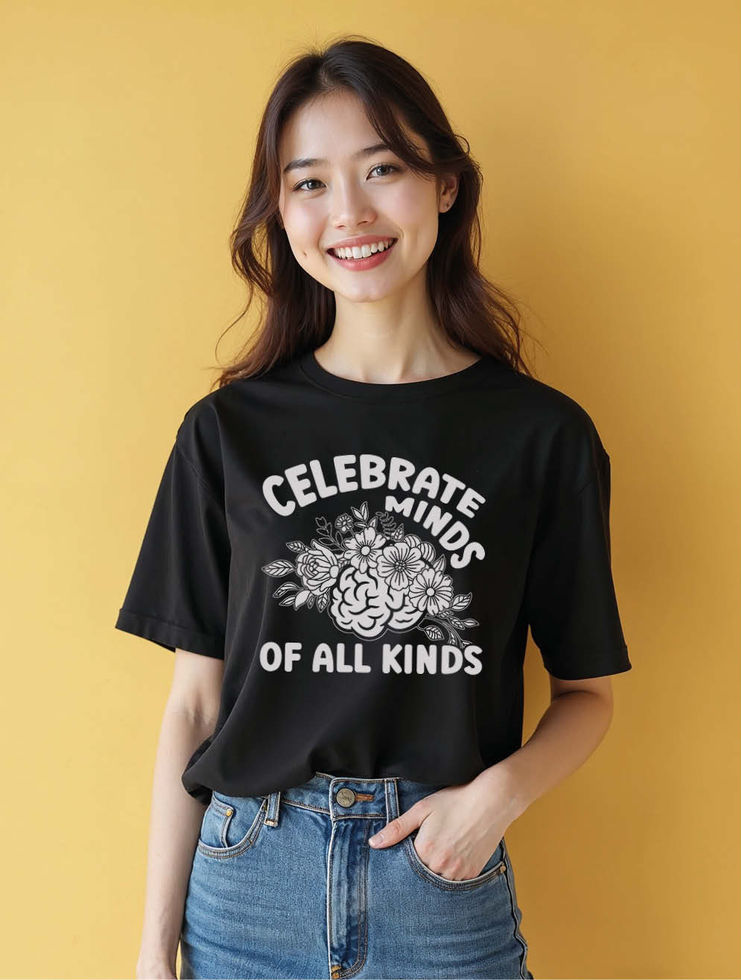 Celebrate minds of all kids Stylish Women’s Typography T-Shirt – Shop Now