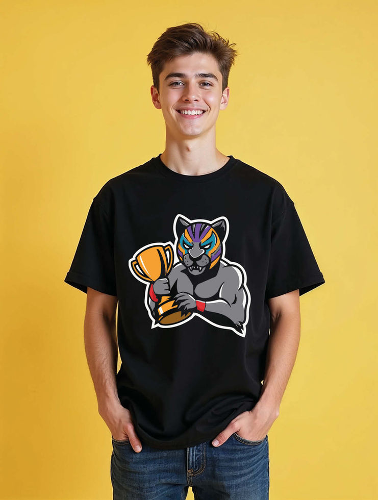 Champion Tiger Mascot Casual Unisex Drop Shoulder Oversized T-Shirt