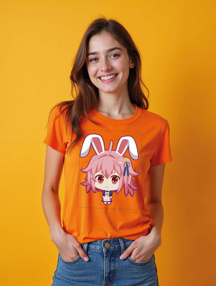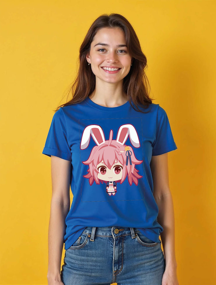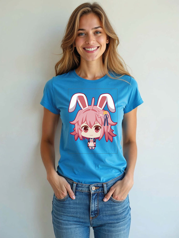 Chibi Anime Girl with Bunny Ears Modern Women’s Graphic T-Shirt – Sale
