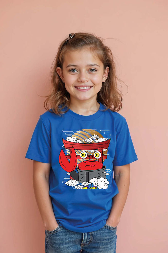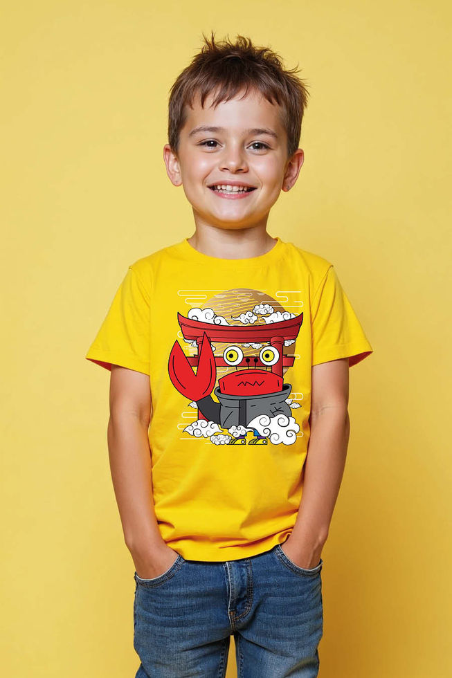 Chibi Crab Torii Shrine Sunset Soft Trendy Printed Tee for Kids – Character