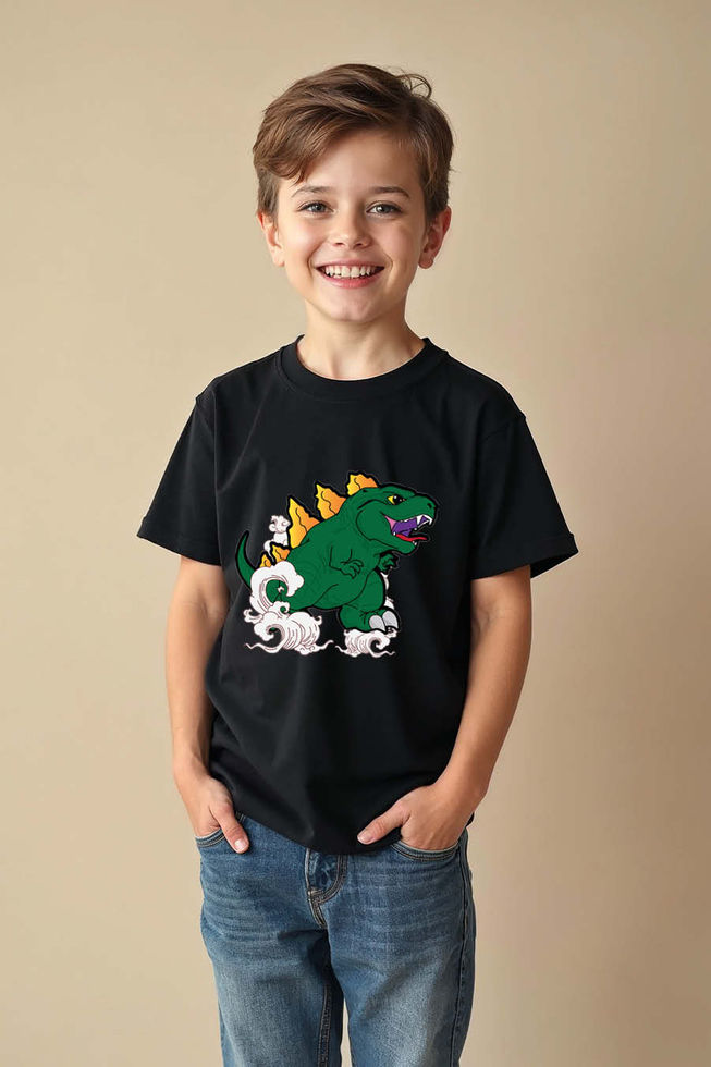 Chibi Kaiju on Clouds Cotton Kids Printed T-Shirt – Cartoon Print Design for Boy