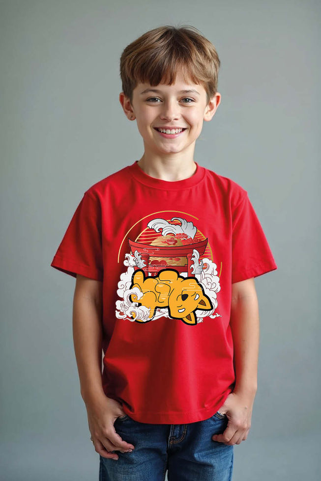 Chibi Shiba Inu Torii Gate Premium Typography Print T-Shirt for Kids – Quote Pri