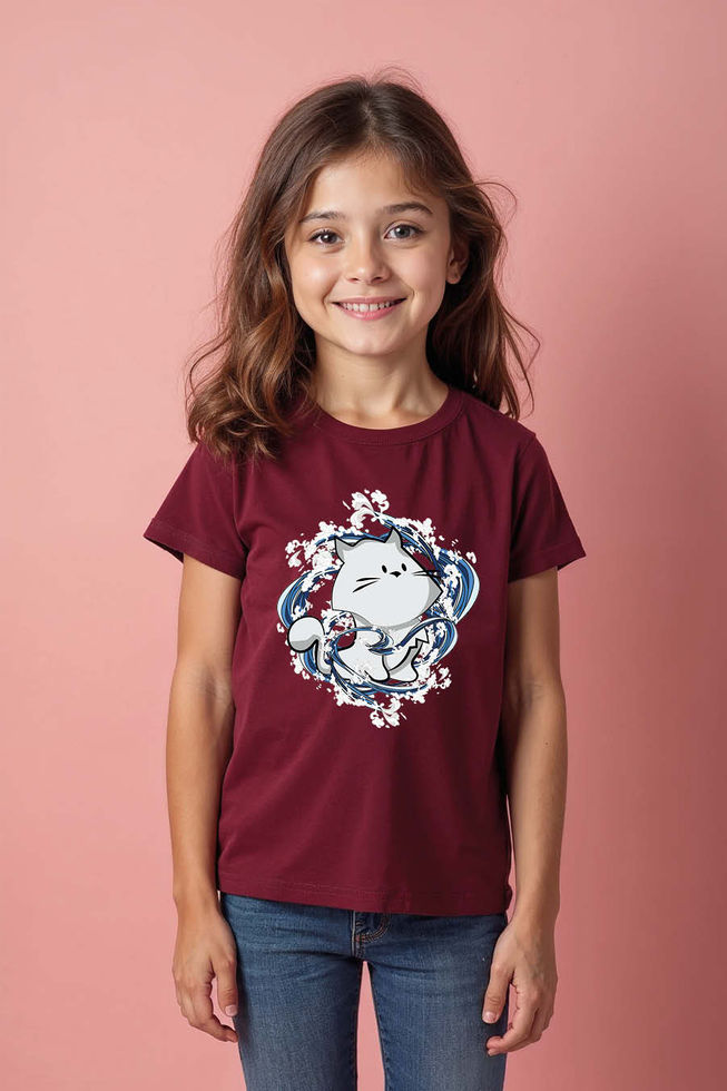 Chibi White Cat Water Vortex Casual Trendy Printed Tee for Kids – Design Print