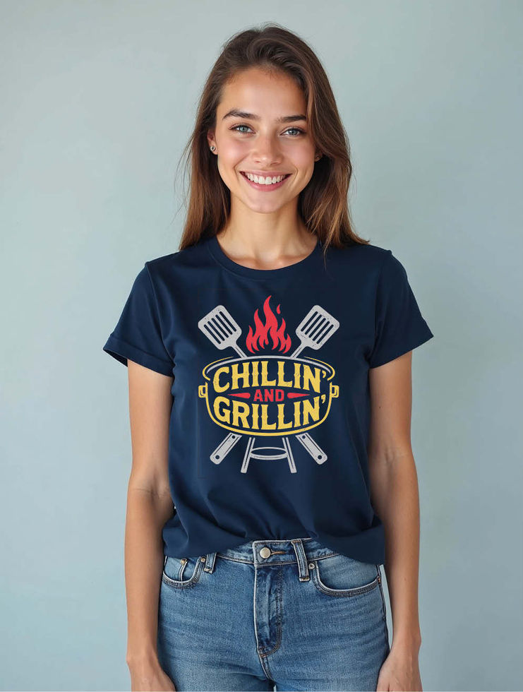 chillin and grillin Urban Women’s Printed Graphic T-Shirt – Premium Quality