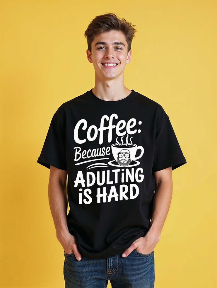 coffee because adulting is hard Cool Unisex Oversized Drop Shoulder T-Shirt