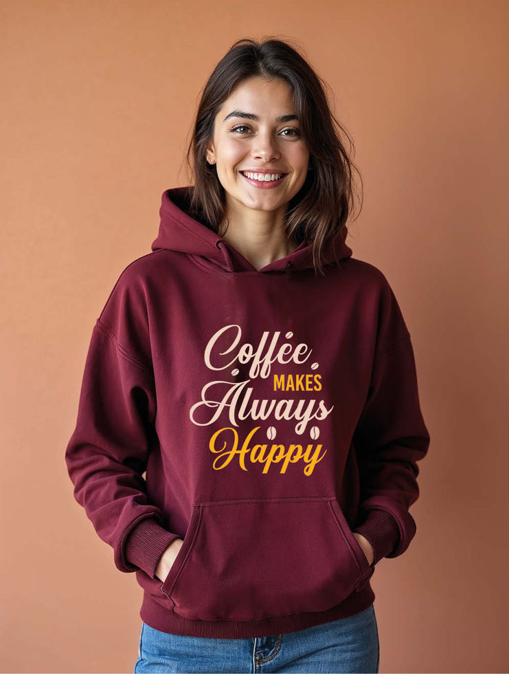 coffee makes always happy Woman's Printed Graphic Stylish Hoodies